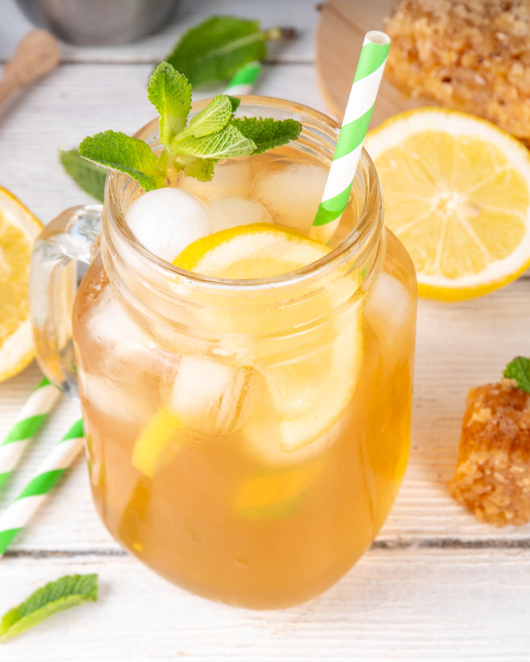 5. Garnish with a lemon wheel and a sprig of mint for a fresh, springtime aroma.